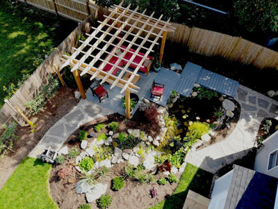 景观设计:弧形小木桥 +花园庭院