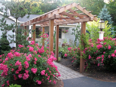 景观设计:入口廊架 +夹景花卉